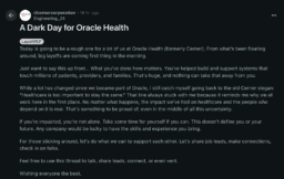 ![]() | Oracle Confirms Layoffs in Kansas CityHIT Consultant - (Thursday September 4, 2025) - Frequent Updates / HIT Consultant | |||