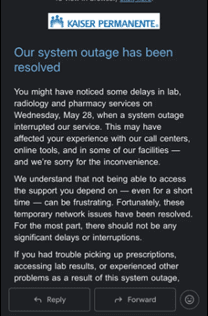 HIStalk - (Friday May 30, 2025) Top News Kaiser Permanente announces that all of its technology systems are back online after dealing with a network outage most of Wednesday. The outage, which Kaiser has attributed to an issue at one of… ![]() Providing 2 Types of mHealth Interventions to Support Self-Management Among People Living With HIV: Randomized Clinical Trial